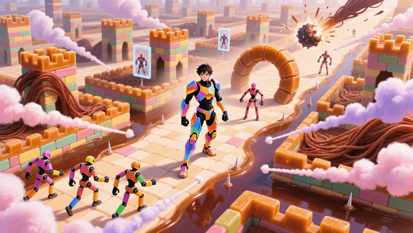 Environmental control: Filling corridors with cotton-candy fog for visibility disruption, laying licorice tripwires, or building candy caltrops that crunch underfoot.